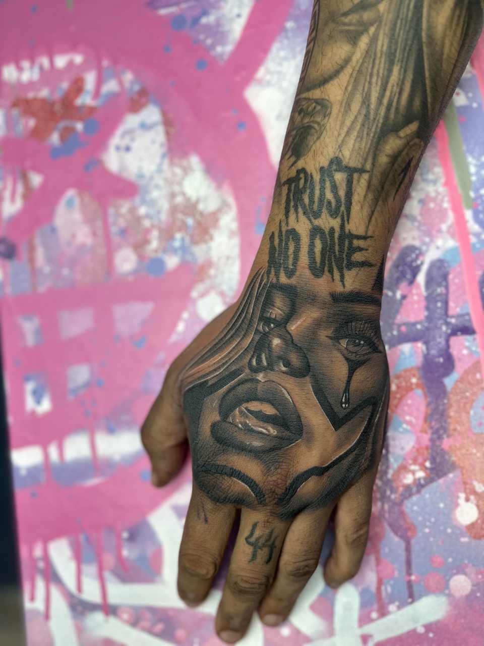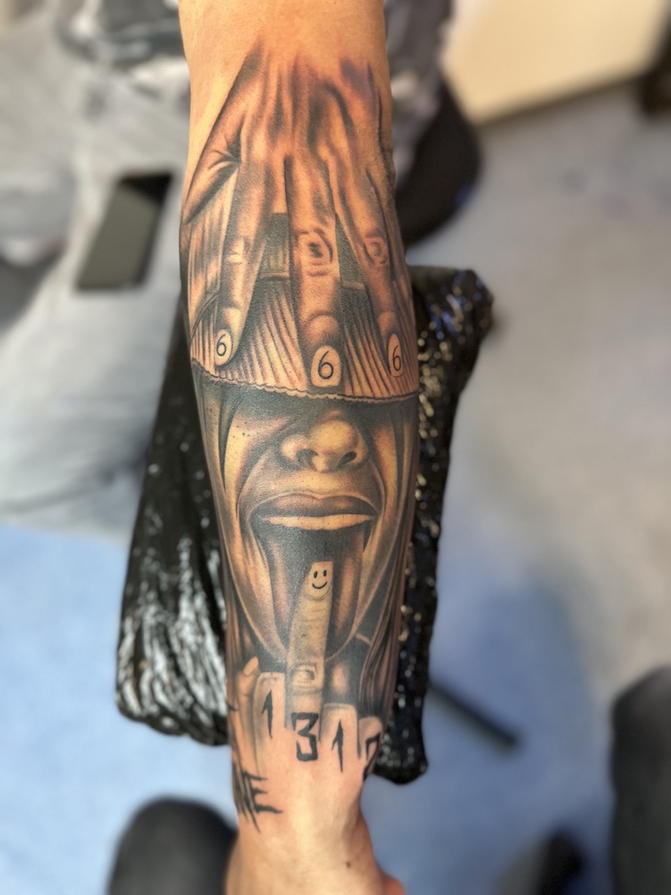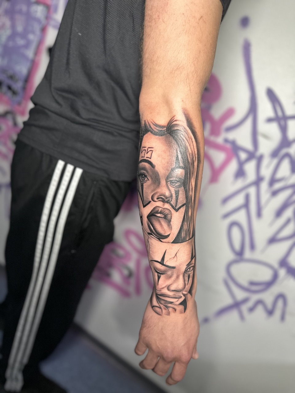 Bei HOOD INK steht dein individueller Stil im Mittelpunkt. Ob realistische Porträts, detailreiche Black & Grey Tattoos, kunstvolle Chicano-Schriftzüge oder kreative Comic- & Graffiti-Styles.