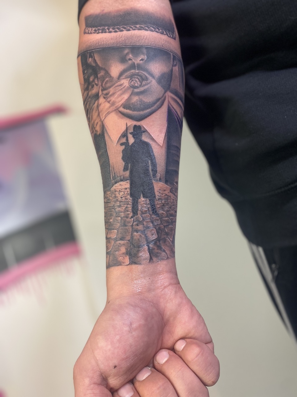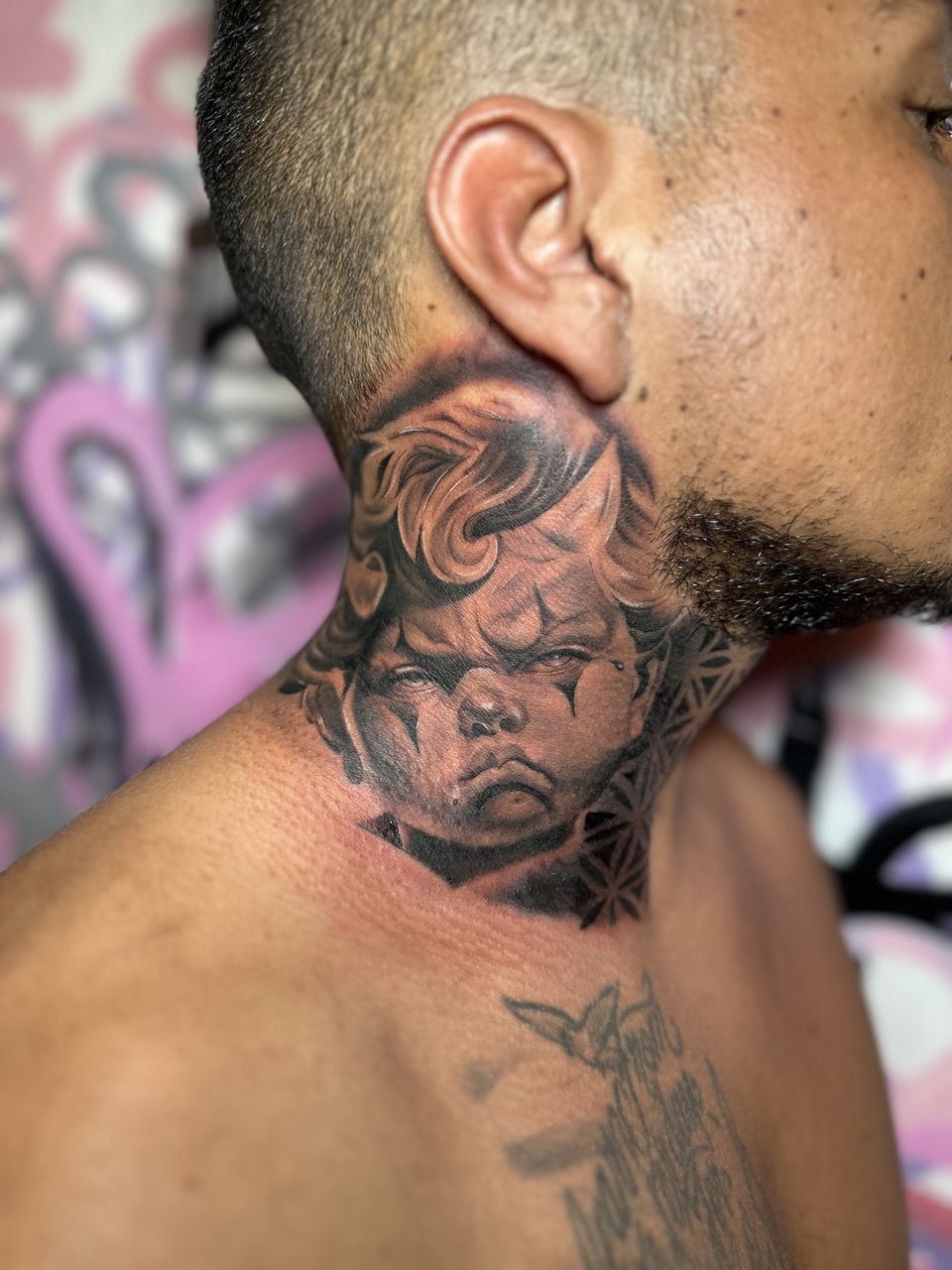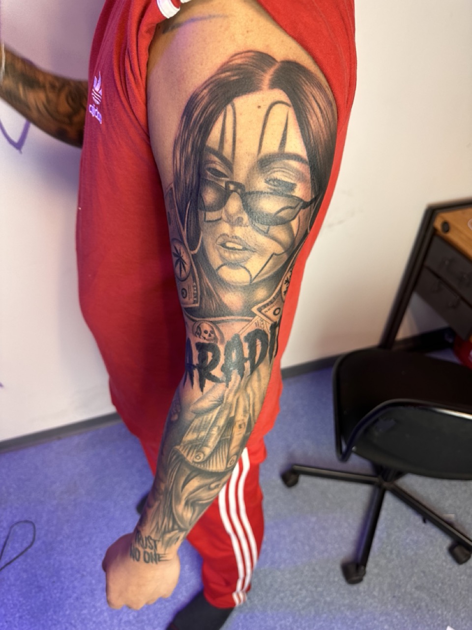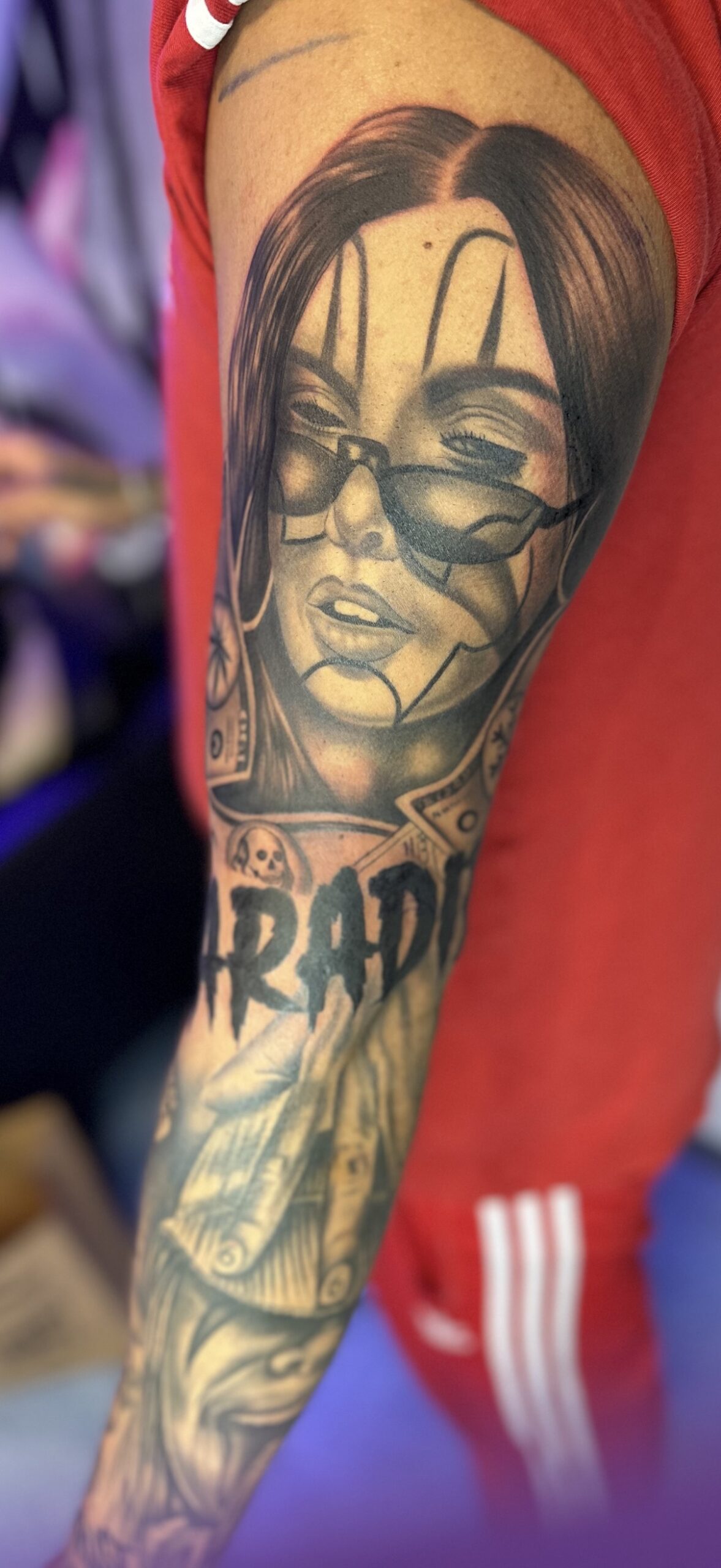 Bei HOOD INK steht dein individueller Stil im Mittelpunkt. Ob realistische Porträts, detailreiche Black & Grey Tattoos, kunstvolle Chicano-Schriftzüge oder kreative Comic- & Graffiti-Styles.